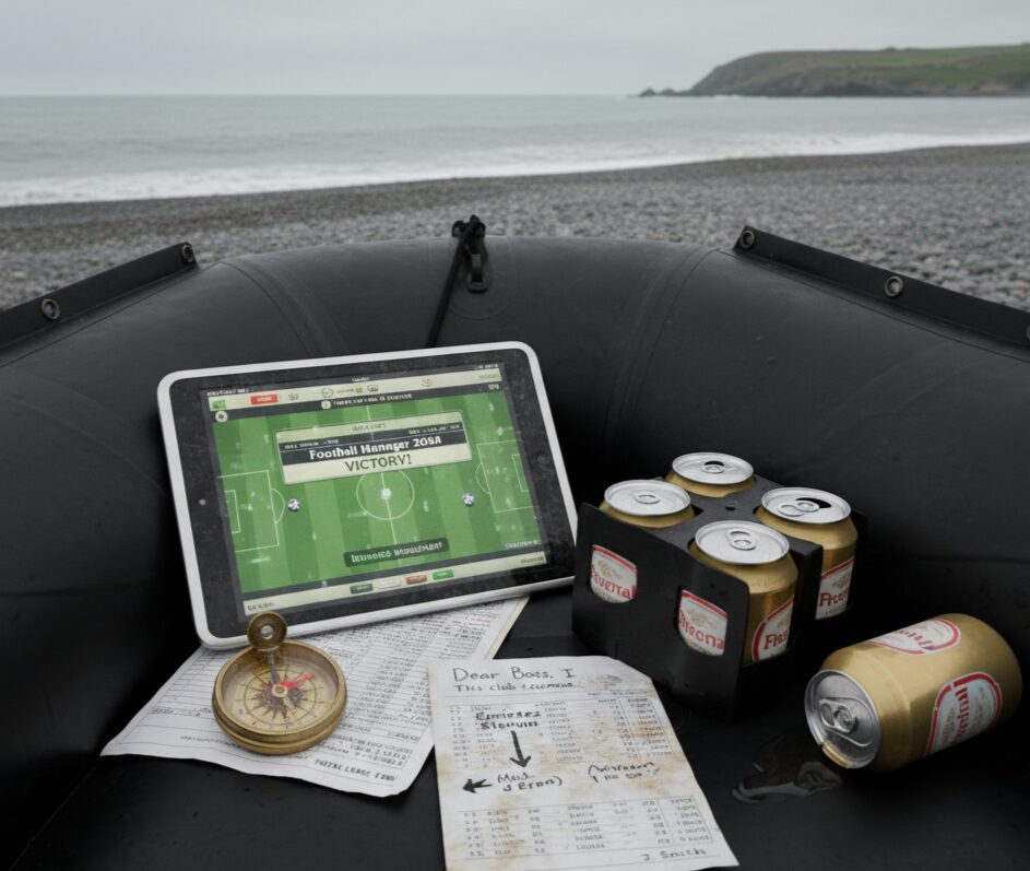 DOUVRES – On pensait avoir tout vu avec le SM Caen, des descentes à la dernière seconde aux sauvetages miraculeux d’un Patrice Garande en sueur, mais là, on vient de franchir un cap. Ce matin, vers 5h30, les garde-côtes britanniques ont intercepté un canot pneumatique qui dérivait dangereusement près des falaises. À l’intérieur ? Gaël Clichy, prostré, en train de dessiner un 4-4-2 sur le boudin du bateau avec de la crème solaire.